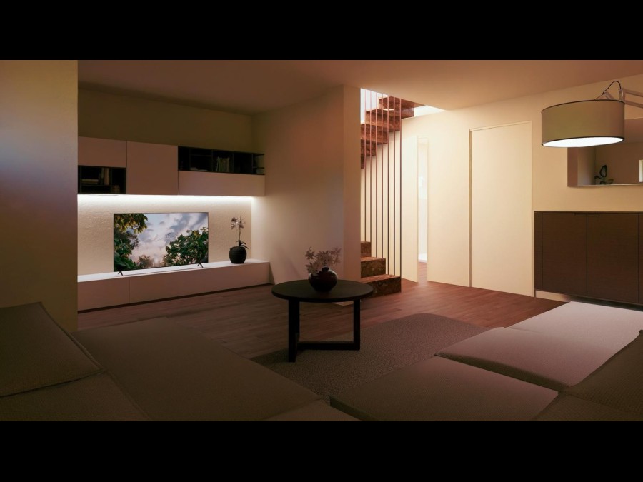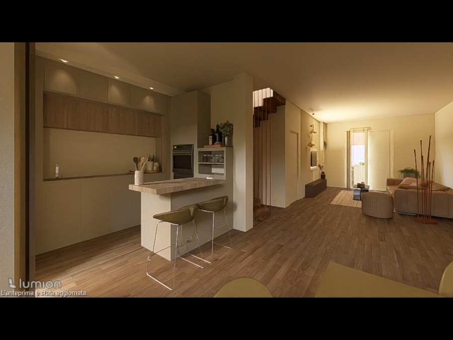 Al piano terra troviamo una luminosa zona living composta da soggiorno, zona pranzo e cucina a vista, una camera matrimoniale, un bagno completo e un locale lavanderia.