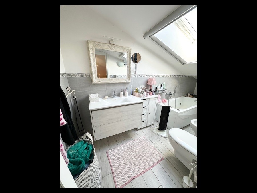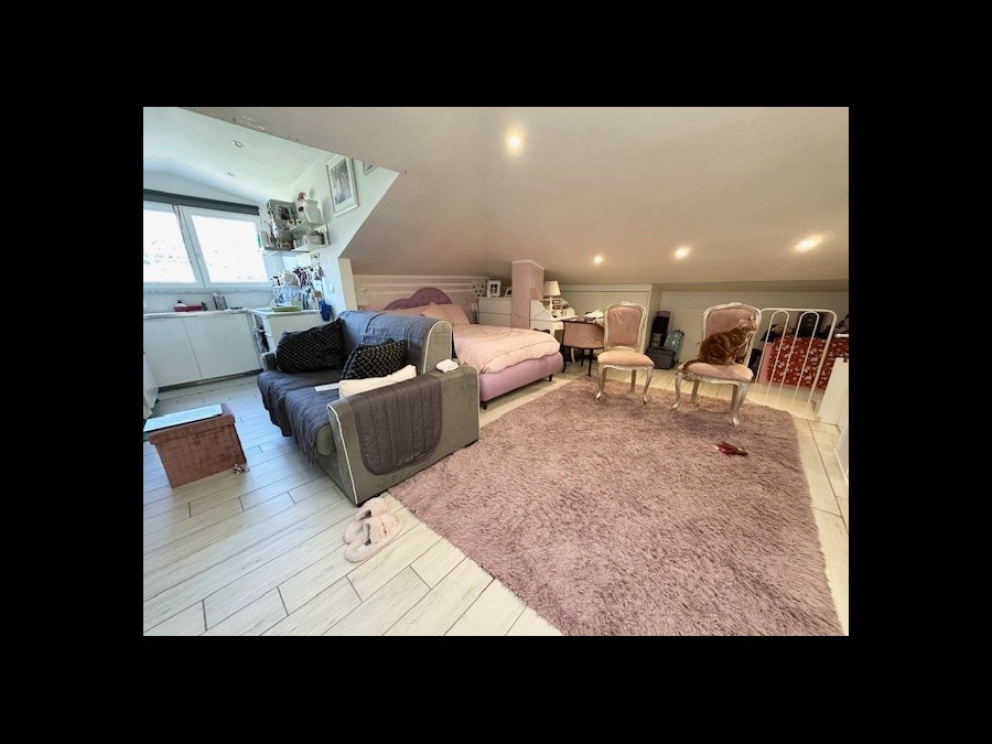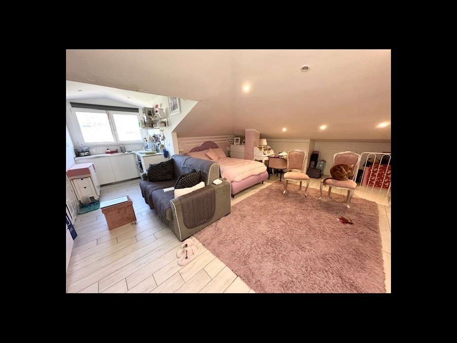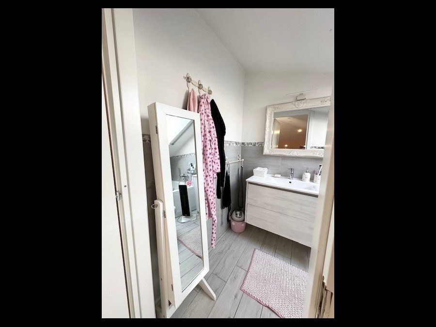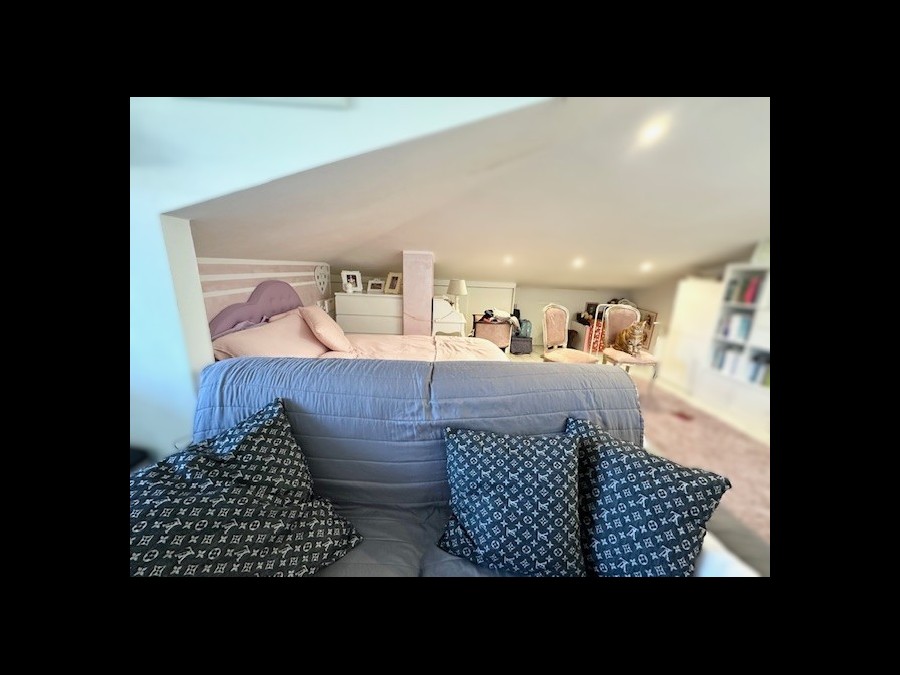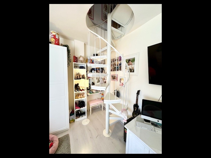 Il piano superiore mansardato è un ambiente unico grande composto da una cucina a vista una zona living, camera e bagno grande con vasca idromassaggio si accede sia dalla scala interna che dal vano condominiale creando all'occorrenza un ambiente completamente indipendente all'appartamento.